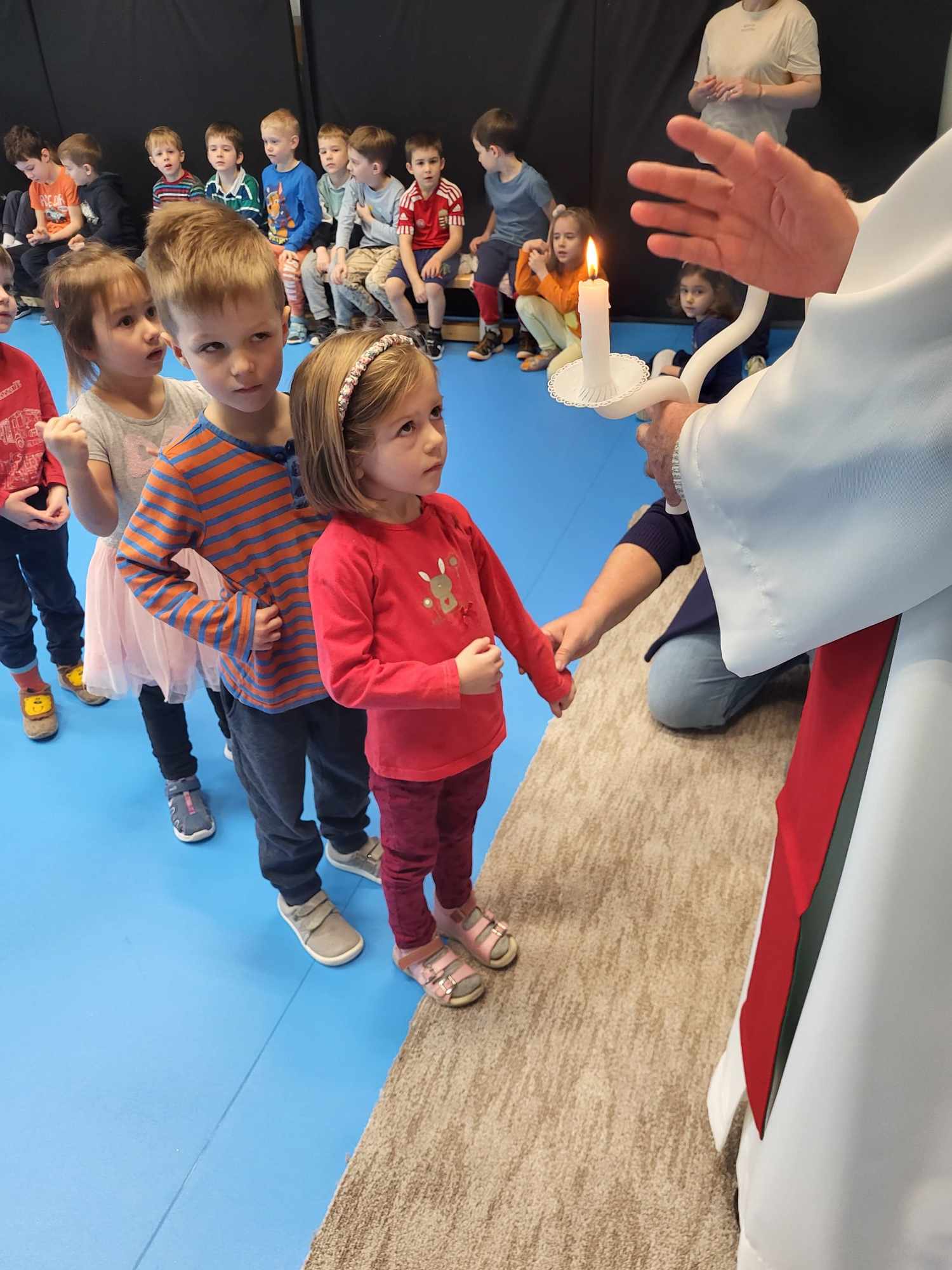 Balázs-áldásban részesültek óvodásaink. István atya elmesélte a gyerekeknek Szent Balázs püspök és vértanú legendáját. A gyertyaszentelés is megtörtént, amelyre minden kisgyerek hozott egy fehér gyertyát.
