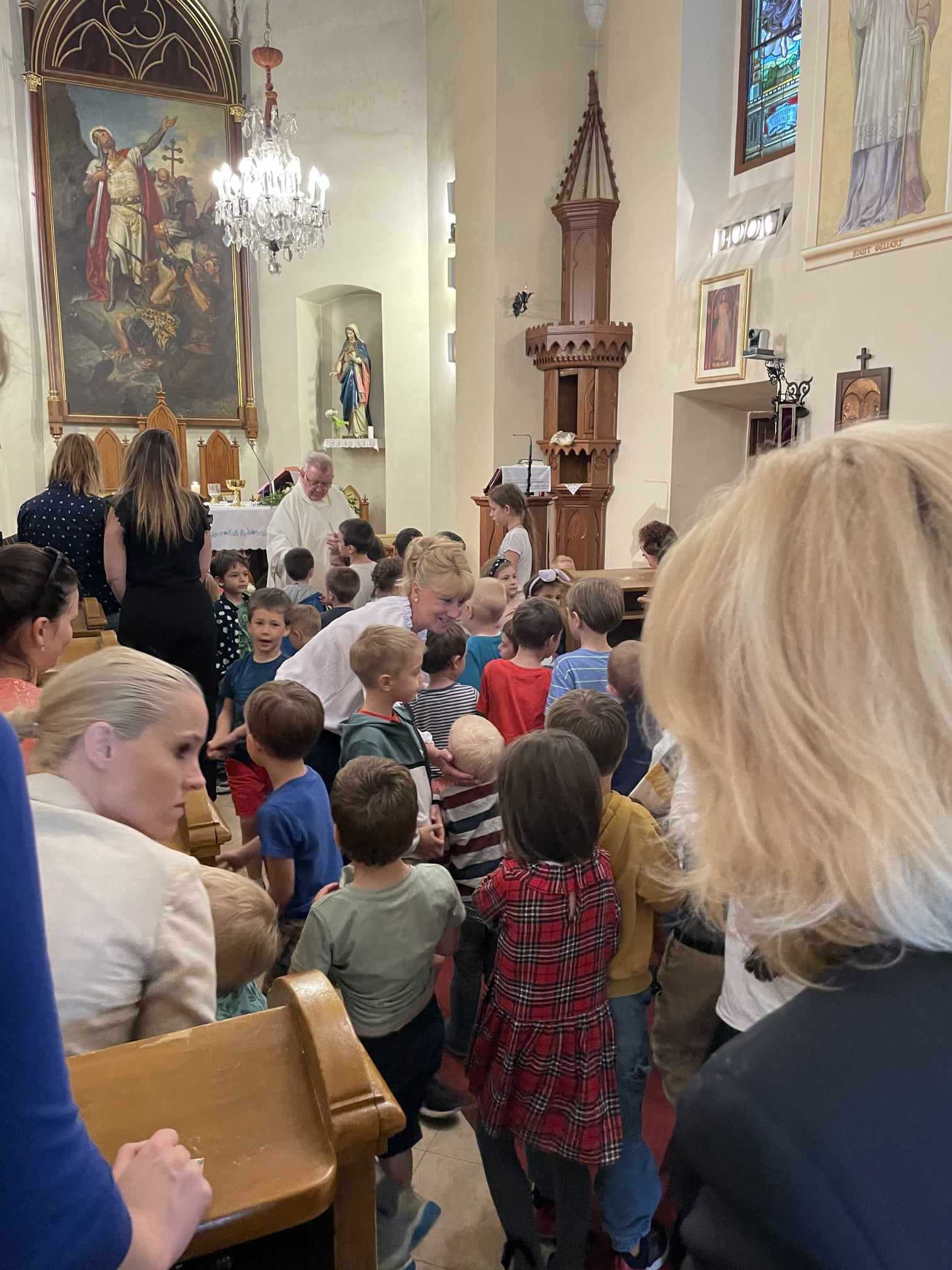 Pénteken délután megtelt a Szent László templom óvodánk gyermekeivel, a szülőkkel, nagyszülőkkel és az óvoda dolgozóival. Ünnepi óvodai szentmisére gyűltünk össze. A szentmisét Kocsis István, óvodánk plébánosa celebrálta, a zenei szolgálatot az édesanyákból és édesapákból álló "Istenhegy hangjai" zenekar szolgáltatta.