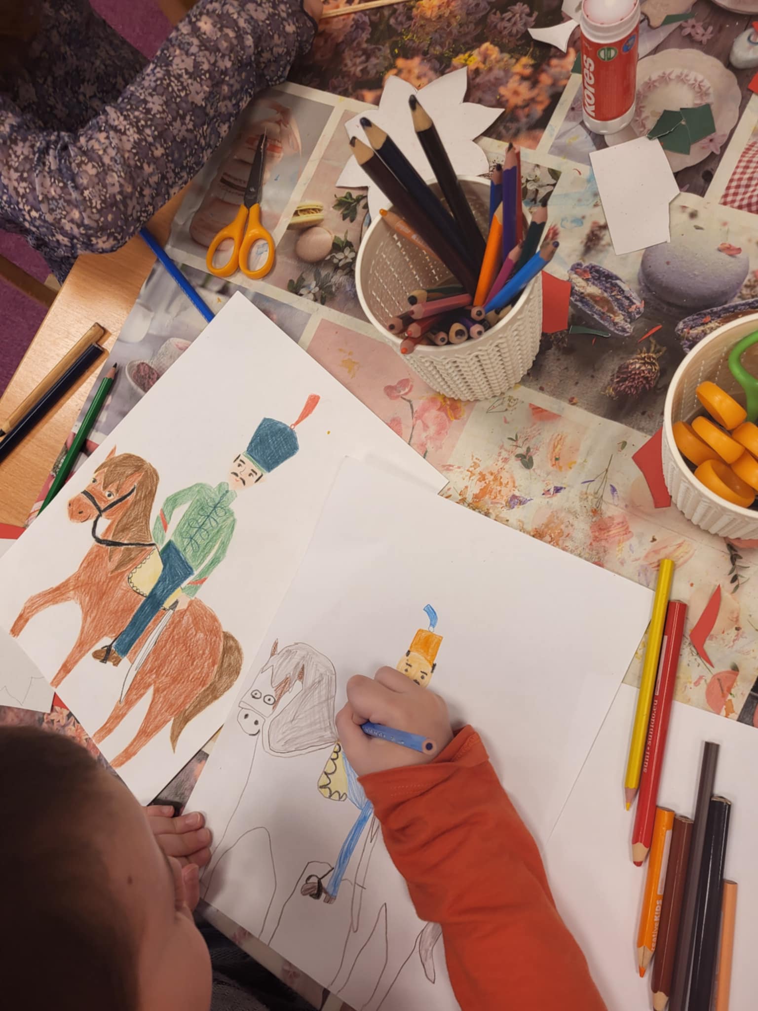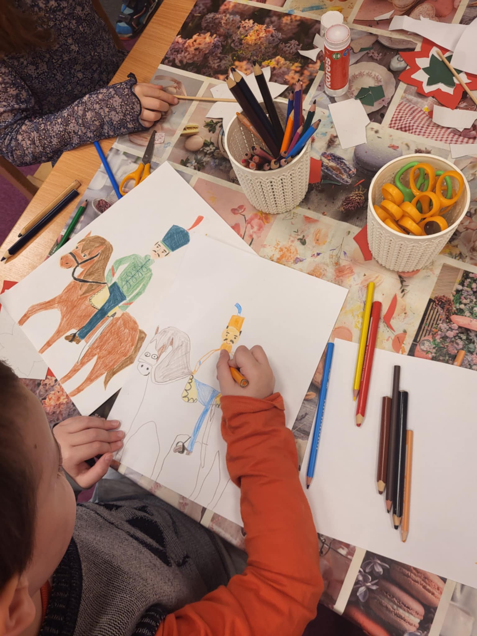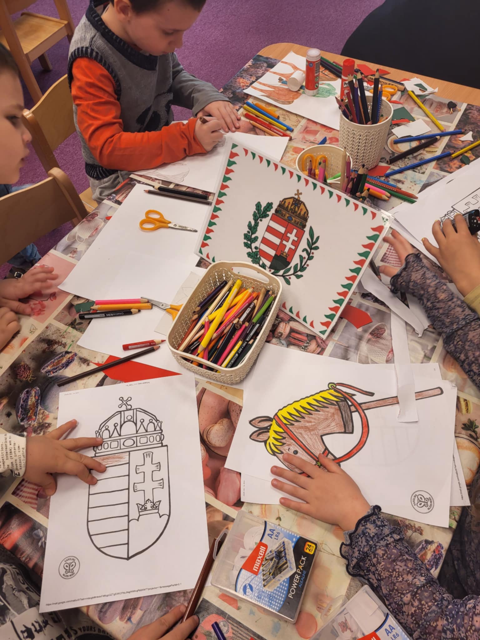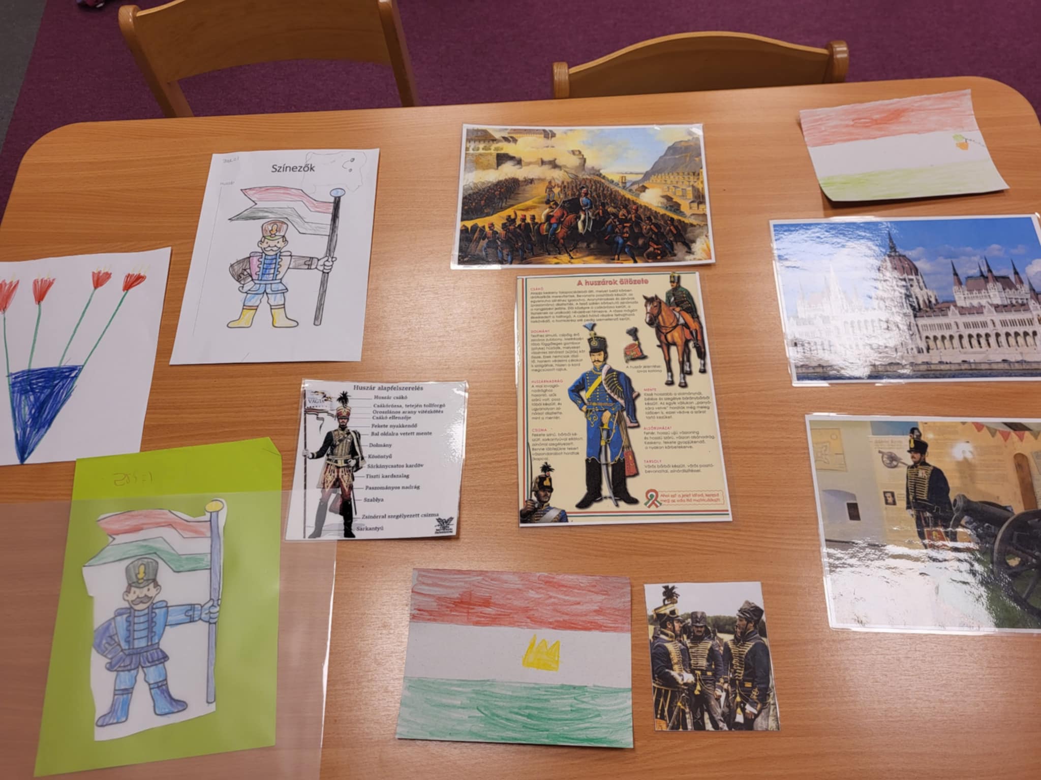 Készítettünk huszár rajzokat, címert, várat. Megbeszéltük a huszárok ruhájának részleteit, eszközeit.