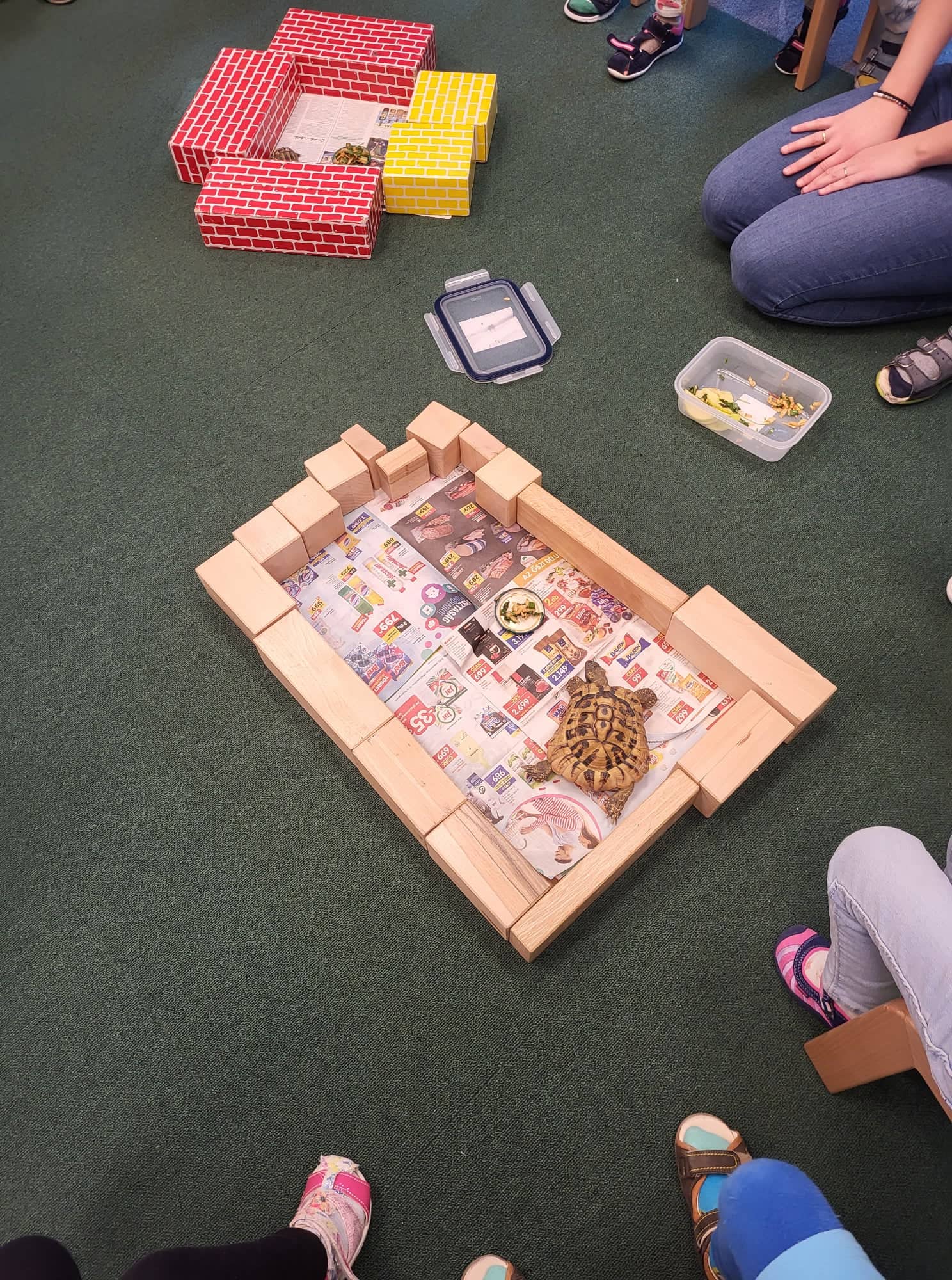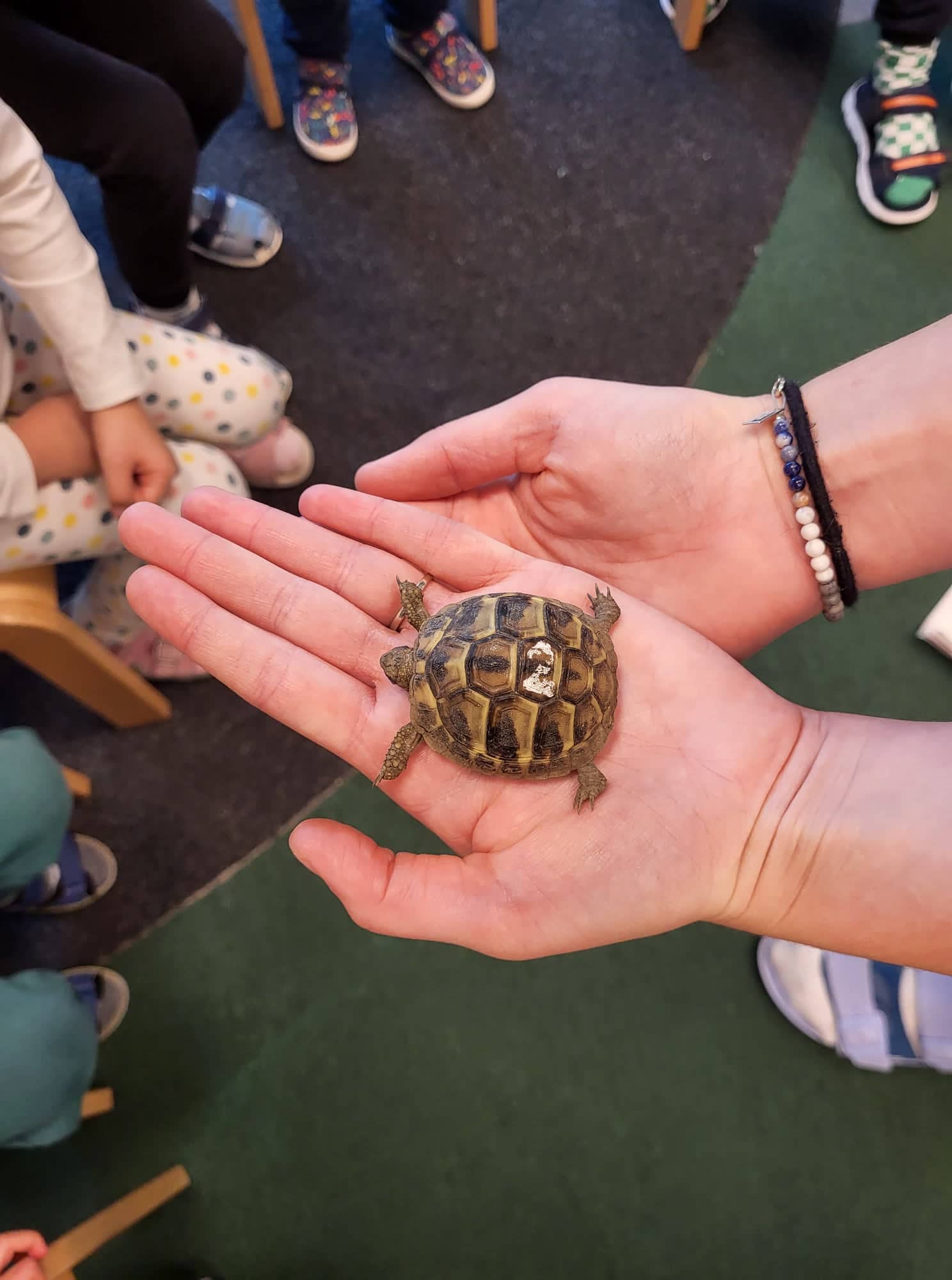 Külső világ tevékeny megismerése és védelme tevékenységen óvodapedagógus kollégánk testközelből mutatta be teknőseit, akiknek megismerhettük jellemzőit, tulajdonságait, hogy mit eszik és hogyan kell vele bánni. Fontosnak tartjuk óvodásainkban az állatszerető szemlélet kialakítását és formálását. Arra törekszünk, hogy már kisgyermekkorban alakuljanak ki az állatokhoz fűződő pozitív érzelmek és az, hogy az állatok tartása és ellátása felelőséggel jár.